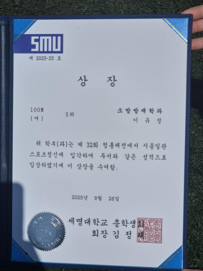본문 시작 홈으로 커뮤니티 학과소개 교수소개 전공과정 커뮤니티 홈페이지가이드 학과행사 학과공지 채용정보 학사일정 학과행사 동아리 소방방재학과의 자랑 궁금합니다 수험생 Q&A 학과행사 페이스북 트위터 프린트 2025학년도 제32회 청룡체전 소방방재학과 소방방재학과 670 2025-09-23 2025년 9월 23일 ~9월 25일 제32회 청룡체전 기간동안 여자 피구, 남자 축구, 남자 농구, 혼성 계주, 여자 100m, 남자 100m 참가하였습니다. 선수분들 모두 수고하셨고, 응원해주신 학우분들 감사드립니다! 목록 이전KICT 화재안전연구소 견학 담당부서 : 소방방재학과 담당자 : - 연락처 : 043-649-1787 최종수정일 : 2024-10-26 만족도조사 만족도 조사 이 페이지에서 제공하는 정보에 대하여 만족하시나요? 매우만족 만족 보통 불만족 매우불만족