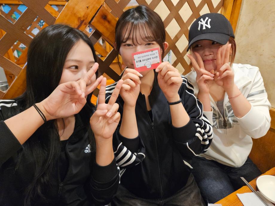 본문 시작 교수님과의 즐거운 식사 자리 임상병리학과 501 2025-10-01 개강총회 상품이었던 교수님과의 식사권 사용 인증샷입니다. 목록 이전2025년도 2학기 개강총회 이전청룡체전 피구부문 우승 담당부서 : 임상병리학과 담당자 : - 연락처 : 043-649-1537 최종수정일 : 2024-10-26 만족도조사 만족도 조사 이 페이지에서 제공하는 정보에 대하여 만족하시나요? 매우만족 만족 보통 불만족 매우불만족