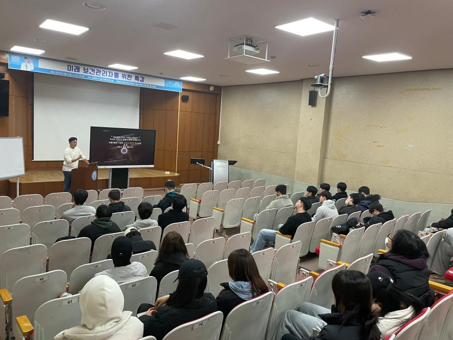 본문 시작 홈으로 커뮤니티 학과소개 진로 및 취업 교수소개 학과과정 커뮤니티 홈페이지가이드 포토갤러리 학과공지 학사일정 포토갤러리 학생회 학과영상 보건안전학과 인스타 보건안전학과 블로그 포토갤러리 페이스북 트위터 프린트 전공특강:아모레서픽 서호준 부장님 보건안전학과 521 2025-11-27 11월 24일(월) 공학관 123호실에서 아모레퍼시픽 안전보건사무국 부장님으로 계시는 서호준 선배님(01학번)을 모시고 졸업자 특강을 진행했습니다. 후배들에게 좋은 말씀 많이 해주셔서 큰 도움이 됐습니다. 목록 이전세명대학교-대한산업안전협회 업무 협약 체결 다음 세명대학교-금호건설, 건설 현장 안전·보건 인력 양성 위한 업무협약 체결 담당부서 : 보건안전학과 담당자 : - 연락처 : 043-649-1777 최종수정일 : 2024-10-26 만족도조사 만족도 조사 이 페이지에서 제공하는 정보에 대하여 만족하시나요? 매우만족 만족 보통 불만족 매우불만족