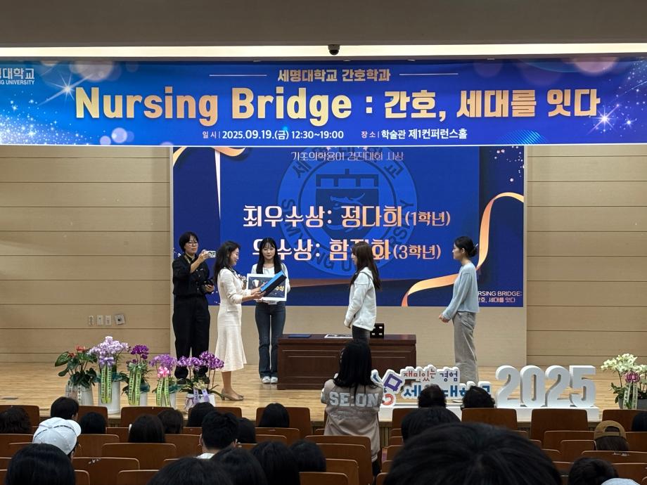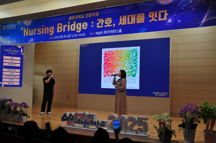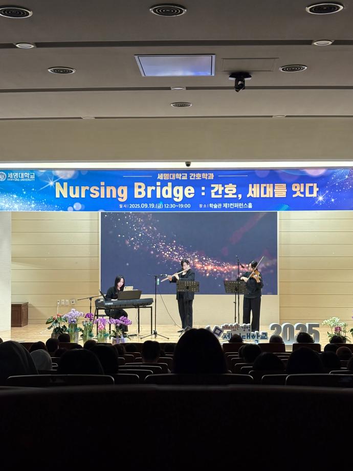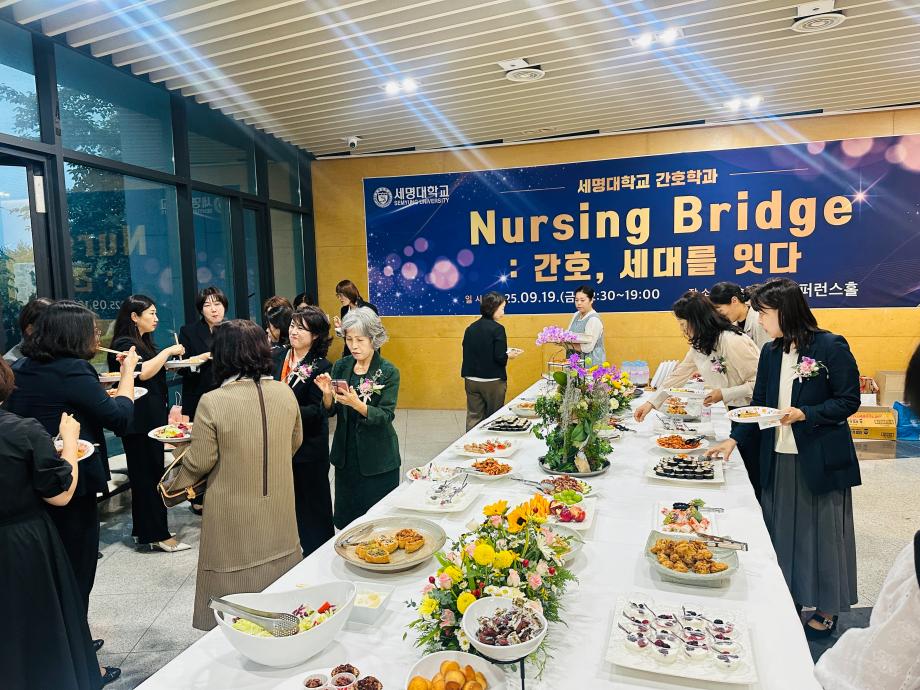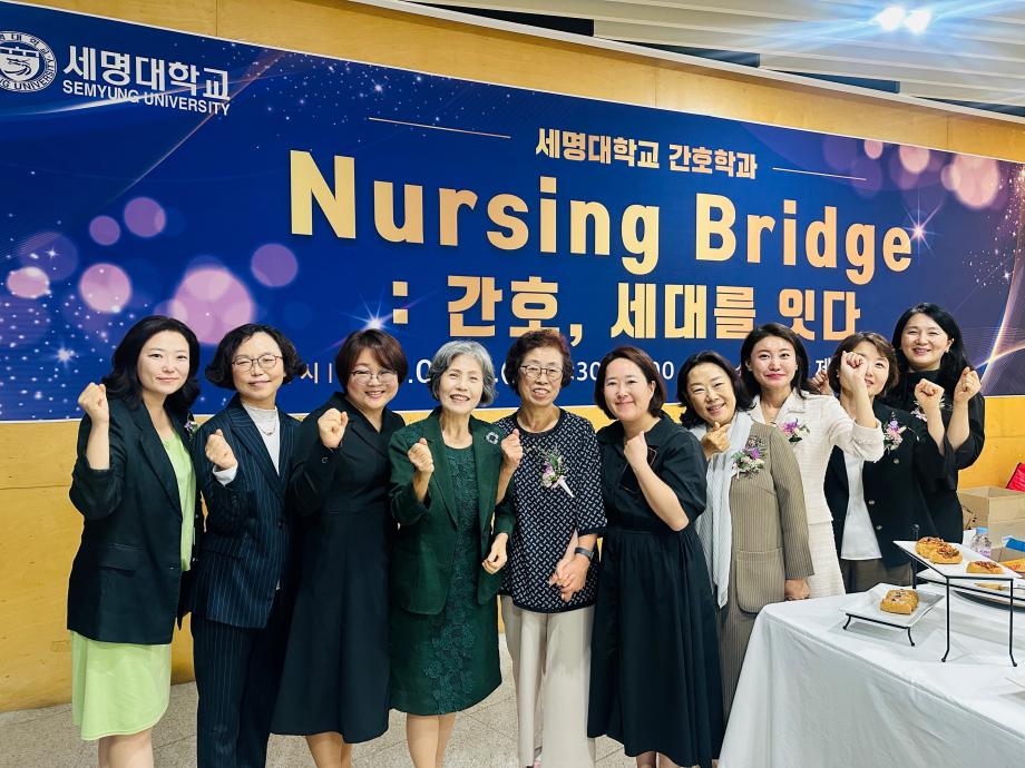 본문 시작 홈으로 커뮤니티 학과소개 교수소개 교육과정 학과소식 학과특성화 사업 커뮤니티 홈페이지가이드 포토갤러리 학사일정 포토갤러리 학생회 학과동아리 학과 취업정보 동창회 학과운영개선의견 발전기금 포토갤러리 페이스북 트위터 프린트 🎉 세명대학교 간호학과 30주년 기념행사 🎉 Nursing Bridge: 간호, 세대를 잇다 간호학과 372 2025-09-24 이번 행사에는 신경림 대한간호협회장님의 기조강연과 정승교 명예교수님의 특별강연이 있었습니다. 권동현 총장님을 비롯한 각 부처 처장님, 명지병원 병원장님, 간호부장님 등 여러 기관에서도 직접 참여해주시고, 축하영상 및 화환을 보내주시어 자리가 더욱 빛났습니다. 1기 졸업생부터 현 재학생까지 500여명이 한뜻으로 모여 뜻깊은 시간을 보냈습니다. 과거와 현재, 그리고 미래의 간호를 잇는 ‘Nursing Bridge’ 그 감동의 순간들입니다. 목록 이전🎓 [2025학년도 핵심간호술 졸업인증제 – 선배님들의 모교 방문] 다음 2025년 2학기 간호학과 교학간담회 담당부서 : 간호학과 담당자 : 서예지 연락처 : 043-649-1357 최종수정일 : 2024-10-26 만족도조사 만족도 조사 이 페이지에서 제공하는 정보에 대하여 만족하시나요? 매우만족 만족 보통 불만족 매우불만족