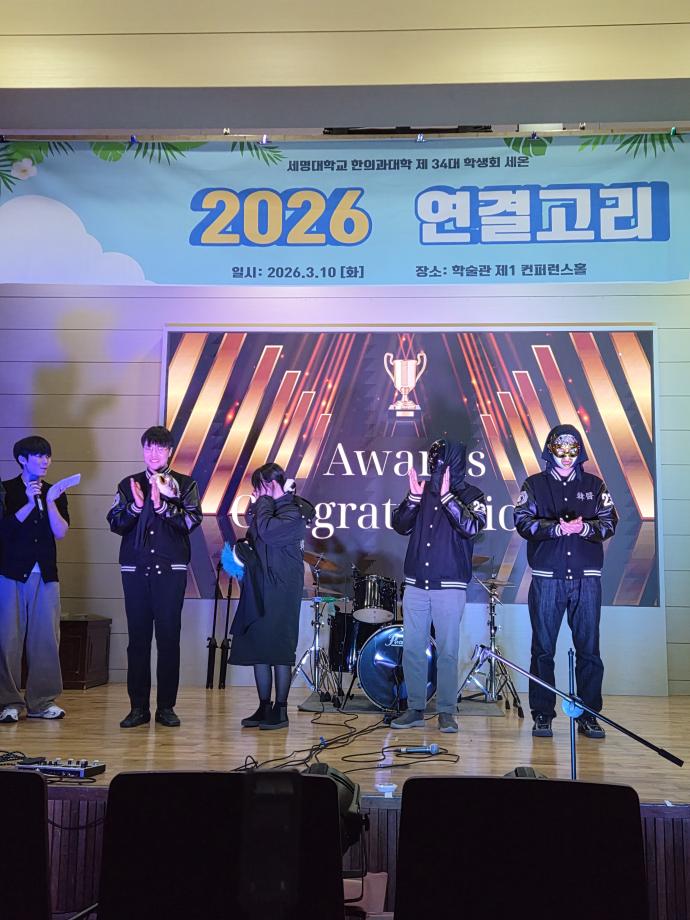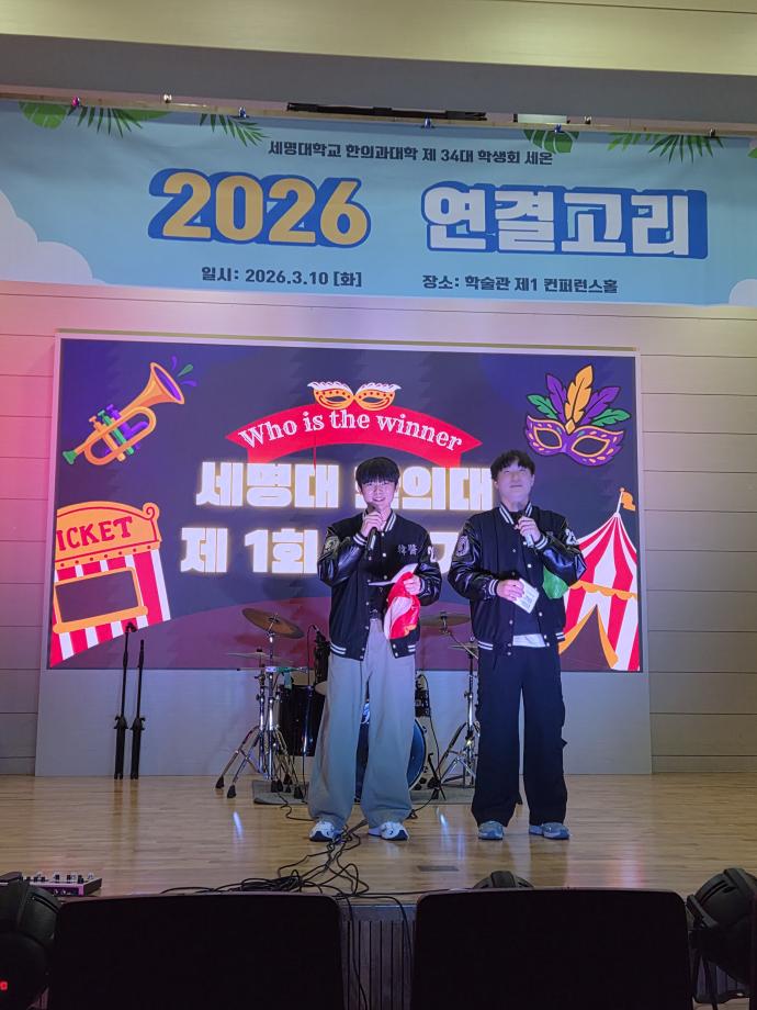 본문 시작 홈으로 대학소식 대학소개 교수소개 대학과정 커뮤니티 대학원 대학소식 홈페이지가이드 포토갤러리 학과공지 포토갤러리 발전기금 위원회 관련사이트 포토갤러리 페이스북 트위터 프린트 2026년 연결고리 행사 한의과대학 50 2026-03-13 2026년 3월 10일 화요일 한의과대학에서는 신입생들의 학교생활 적응을 돕기 위해 한의대 학생회 주관으로 재학생들과 친해지기, 한의대 동아리 소개 및 공연 등으로 이루어진 연결고리 행사를 개최하였습니다. 신입생들과 재학생들에게 소중한 추억으로 남았기를 바랍니다. 목록 이전2026년 한의과대학 신입생 대상 꿈 설계학기 진행 담당부서 : 한의과대학 담당자 : - 연락처 : 043-649-1701 최종수정일 : 2024-10-26 만족도조사 만족도 조사 이 페이지에서 제공하는 정보에 대하여 만족하시나요? 매우만족 만족 보통 불만족 매우불만족
