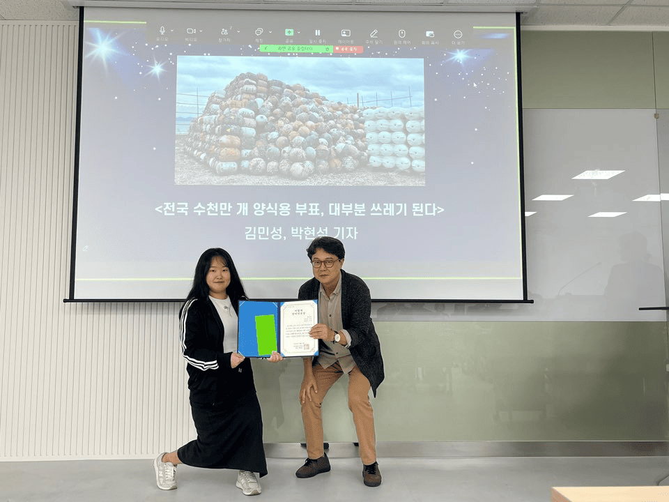 수상식에 참여하지 못한 두 기자님을 대신해 환경부 태린 부장님께서 대신 받아주셨습니다!