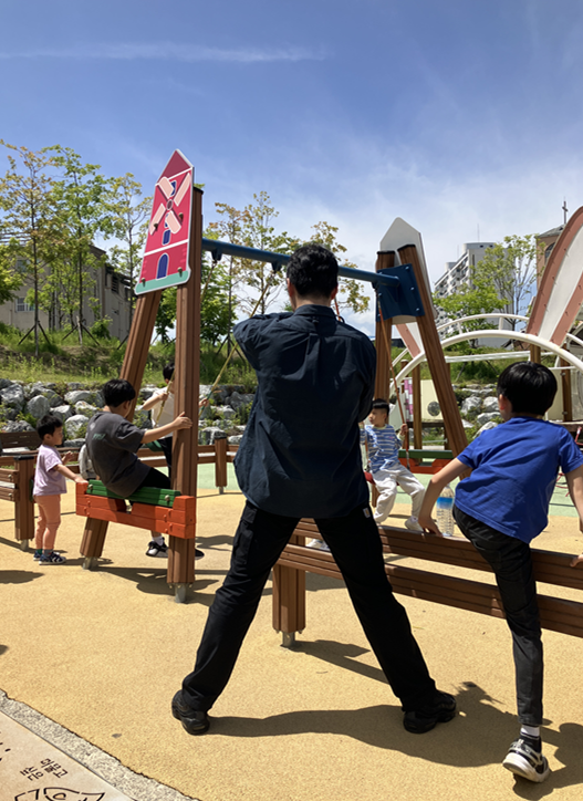(놀이터 리포트 촬영을 위해 열일 중인 혁규 전임 조교의 열일하는 뒷모습)