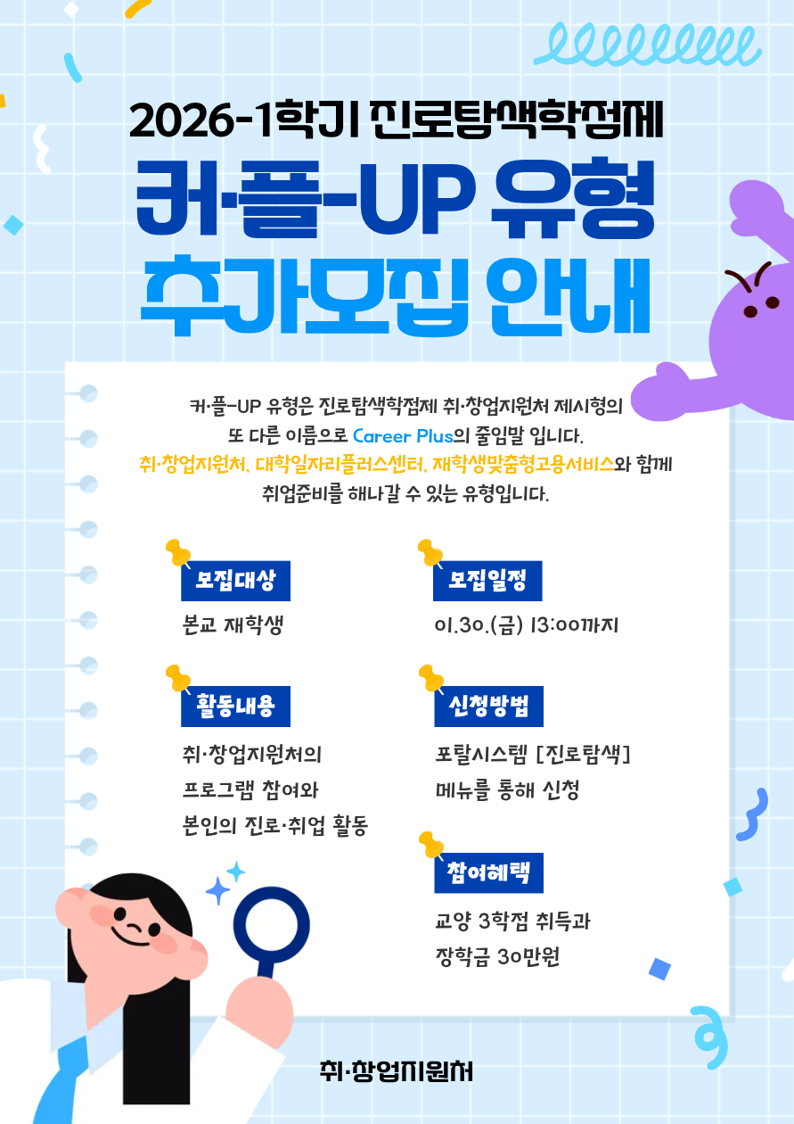 ⭐[진로탐색학점제] 취·창업지원처 제시형 참여자 추가모집 안내⭐