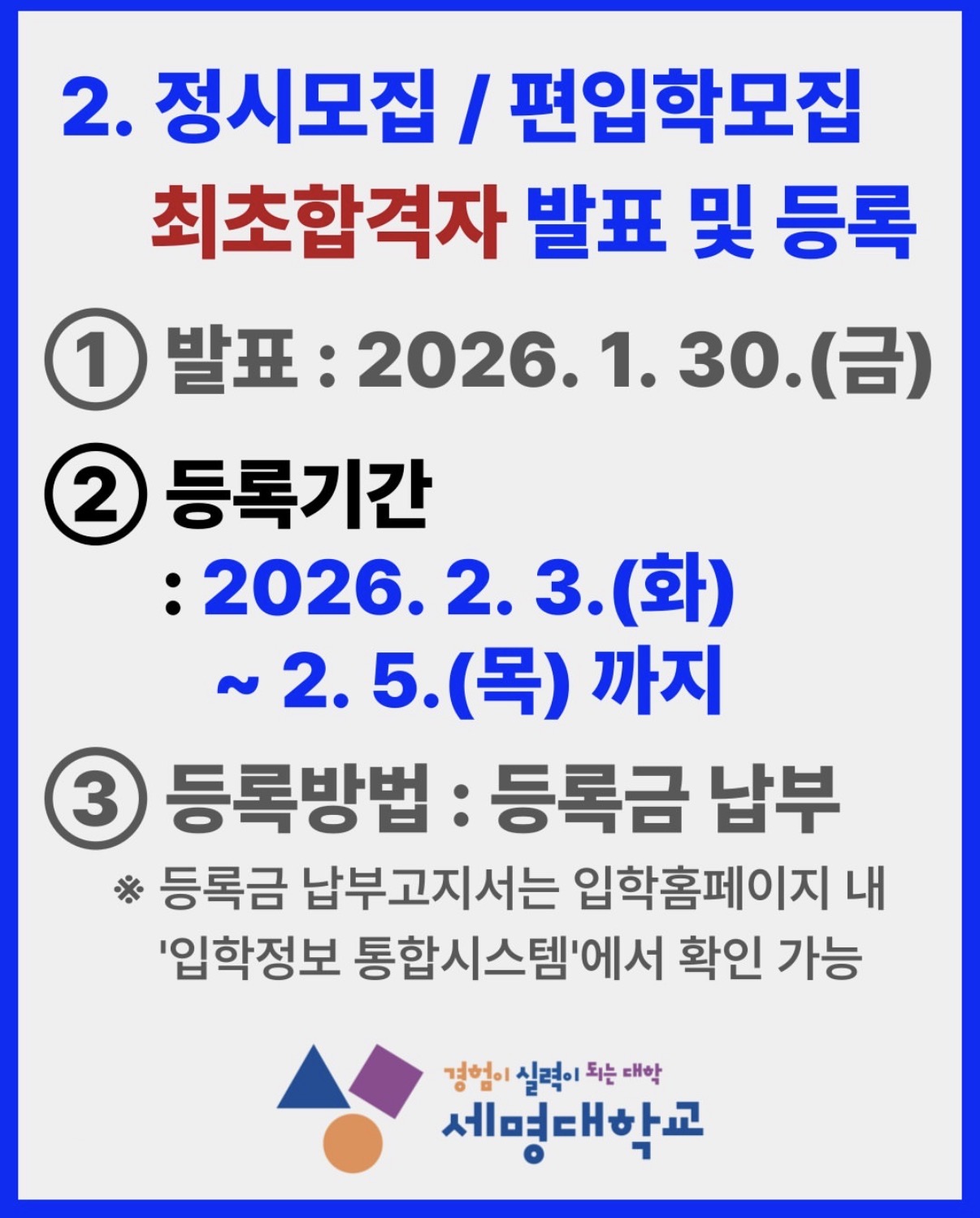 ② 최초합격자 등록기간 : 2026. 2. 3(화) ~ 2. 5(목) 16:00 까지