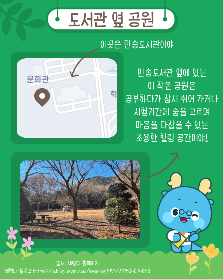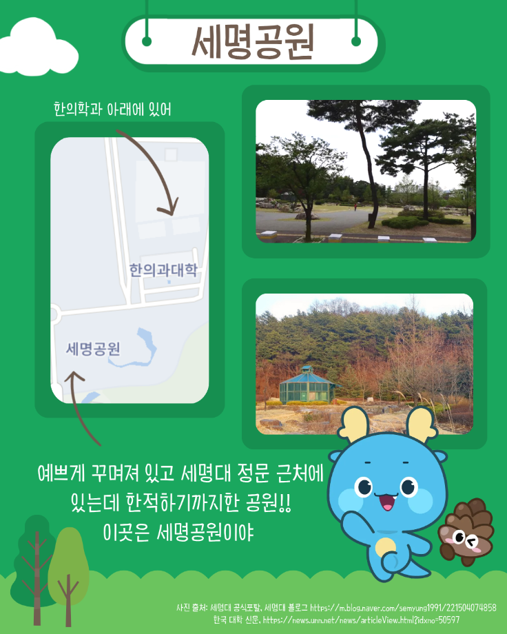 본문 시작 홈으로 MCC News 학과소개 교수소개 학과과정 MCC News MCC SNS 홈페이지가이드 미디어 정보통 학과 및 재학생 교수 및 졸업생 미디어 정보통 미디어 정보통 페이스북 트위터 프린트 세명대의 숨겨진 장소를 알려줄게! 미디어콘텐츠창작학과 715 2026-01-19 자세한 내용은 세명대학교 블로그에서 확인하실 수 있습니다. 목록 이전끄라몽 84회 CAT(고양이) 디자인 공모전 다음 2026년 제17회 장애인식개선 공모전 담당부서 : 미디어콘텐츠창작학과 담당자 : - 연락처 : 043-649-1741 최종수정일 : 2024-10-26 만족도조사 만족도 조사 이 페이지에서 제공하는 정보에 대하여 만족하시나요? 매우만족 만족 보통 불만족 매우불만족
