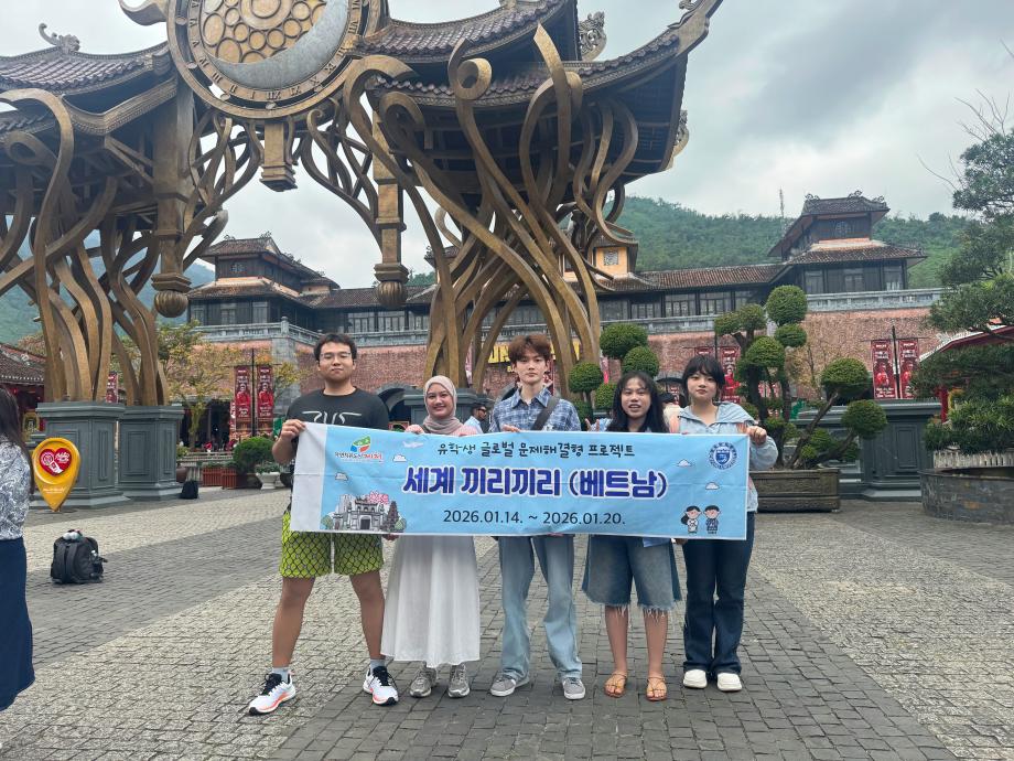 본문 시작 홈으로 커뮤니티 학과안내 교수소개 학과과정 커뮤니티 홈페이지가이드 학과사진첩 공지사항 취업정보 학과사진첩 학과행사 동아리 학생회 교우소식 학과사진첩 페이스북 트위터 프린트 겨울방학 해외 배낭여행-다낭 법학과 159 2026-01-22 경영학과 대학원생 2명(여학생) , 경영학과 4학년생 2명, 법학과 1명. 목록 이전겨울방학 해외 배낭여행-대만 다음 겨울방학 해외 배낭여행-푸꾸옥 담당부서 : 법학과 담당자 : - 연락처 : 043-649-1764 최종수정일 : 2024-10-26 만족도조사 만족도 조사 이 페이지에서 제공하는 정보에 대하여 만족하시나요? 매우만족 만족 보통 불만족 매우불만족